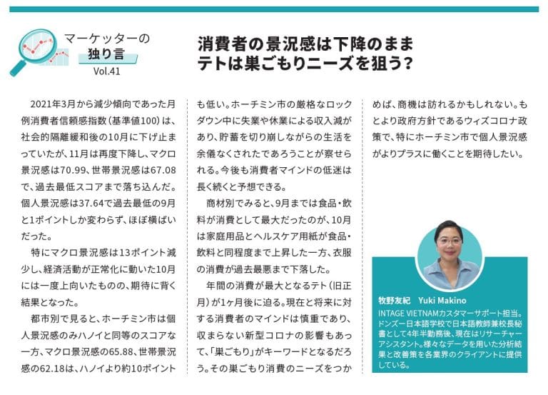 “消費者の景況感は下降のまま テトは巣ごもりニーズを狙う?” - 出典:月刊誌「ACCESS」(2021年12月号)