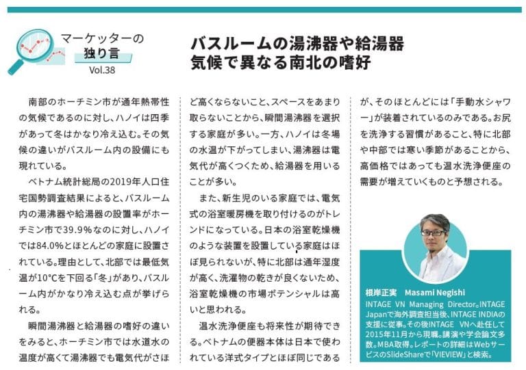 “バスルームの湯沸器や給湯器、気候で異なる南北の嗜好” - 出典:月刊誌「ACCESS」(2021年9月号)