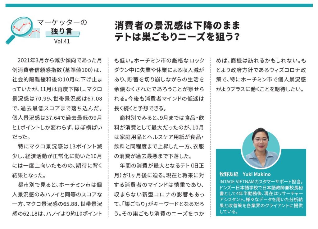 “消費者の景況感は下降のまま テトは巣ごもりニーズを狙う?” - 出典:月刊誌「ACCESS」(2021年12月号)