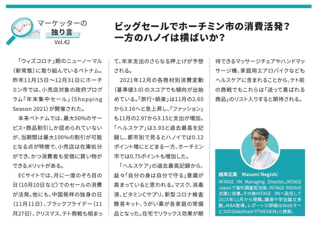“ビッグセールでホーチミン市の消費活発?一方のハノイは横ばいか?” - 出典:月刊誌「ACCESS」(2022年1月号)