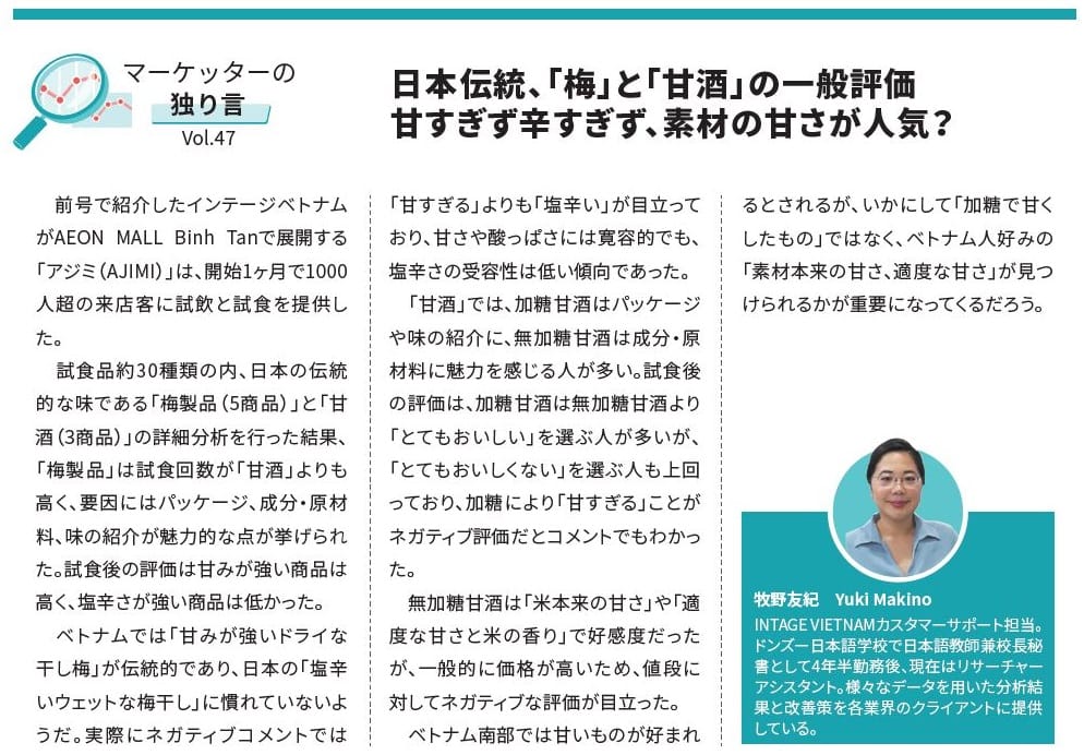 “日本伝統、「梅」と「甘酒」の一般評価 甘すぎず辛すぎず、素材の甘さが人気” - 出典:月刊誌「ACCESS」(2022年6月号)