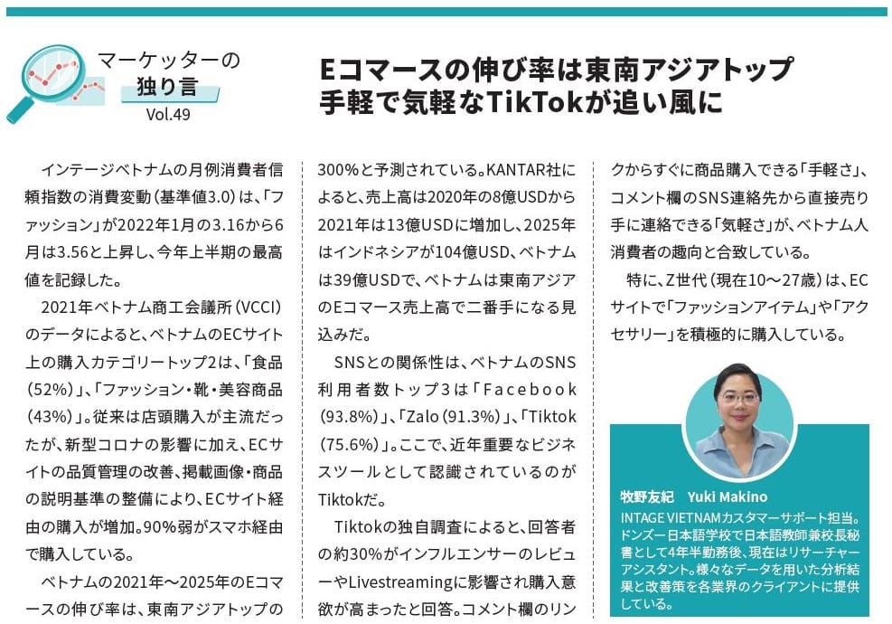 “Eコマースの伸び率は東南アジアトップ 手軽で気軽なTiktokが追い風に” - 出典:月刊誌「ACCESS」(2022年8月号)