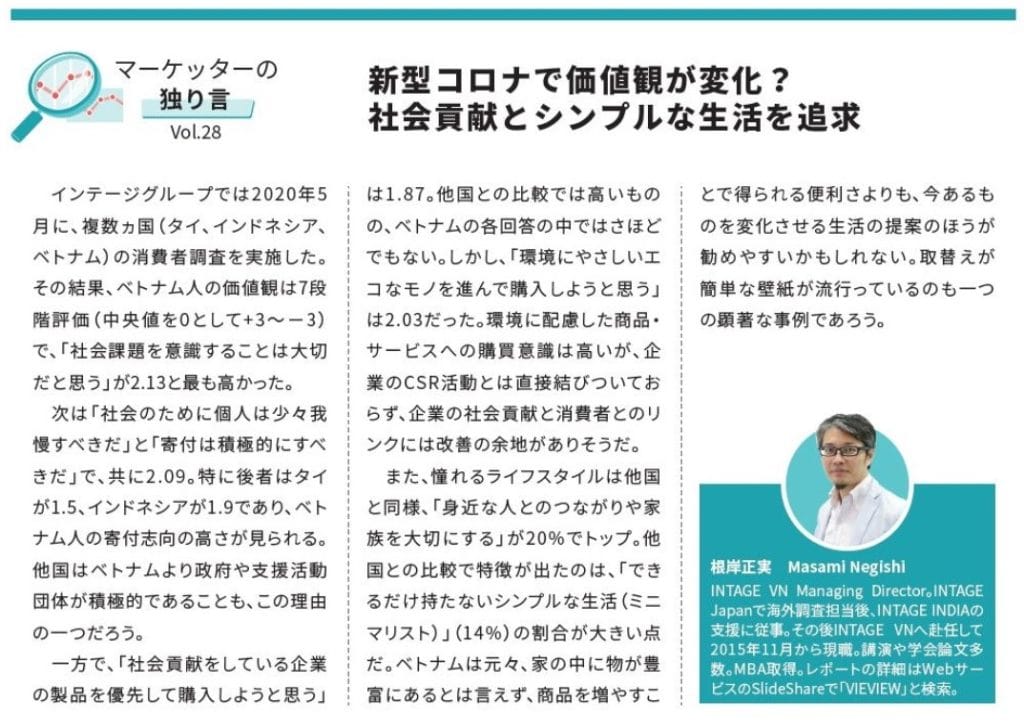 “新型コロナで価値観が変化? 社会貢献とシンプルな生活を追求” 出典:月刊誌「ACCESS」(2020年11月号)
