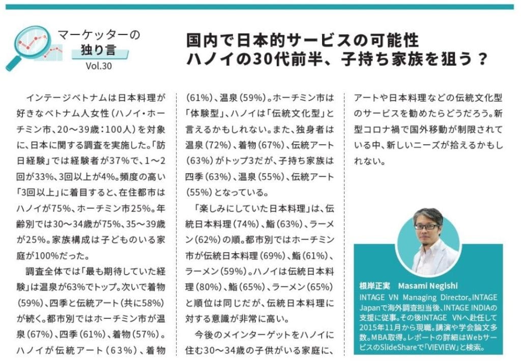 “国内で日本的サービスの可能性 ハノイの30代前半、子持ち家族を狙う?” 出典:月刊誌「ACCESS」(2021年1月号)