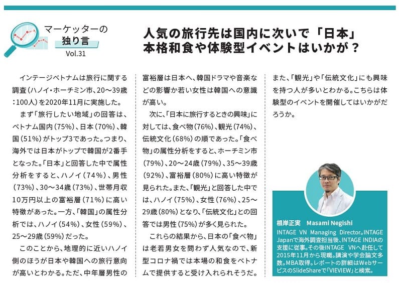 [Article] “Japan is the 2nd most popular travel destination after domestic travel – how about authentic Japanese food or experience tourism?” from ACCESS (Feb. 2021)