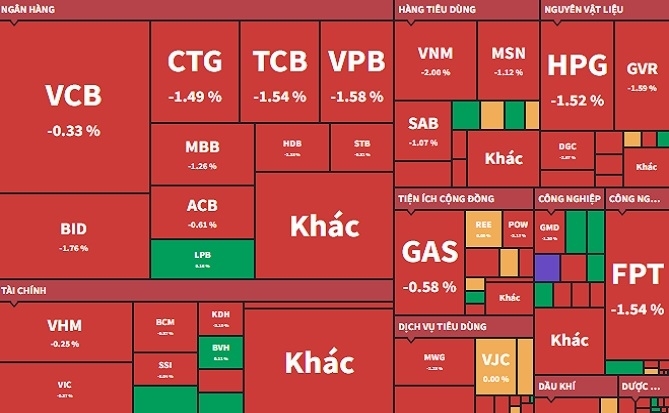 | Nhóm cổ phiếu ngân hàng dẫn đầu đà giảm. Ảnh: VDSC. |