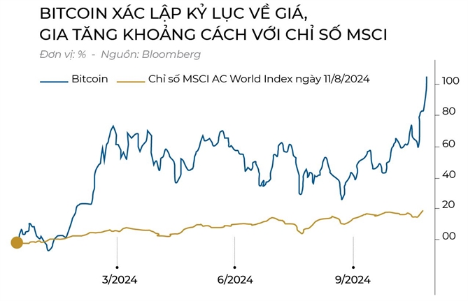 Đáng lưu ý, việc thị trường tiền điện tử tăng vọt trong những ngày qua cũng có thể đã tác động lên tỉ giá VND/USD và thị trường vàng. Tính từ đầu năm đến nay, giá USD tại các ngân hàng tăng khoảng 1.100 đồng, tương đương mức tăng 4,4%. Riêng trong tháng 10 và tháng 11, VND đã mất hơn 3% giá trị so với USD. Các chính sách của ông Trump về hạn chế nhập cư bất hợp pháp, ban hành thuế quan mới có thể thúc đẩy tăng trưởng và cả lạm phát, làm giảm khả năng cắt giảm lãi suất của Cục Dự trữ Liên bang Mỹ (FED) và gia tăng sức mạnh cho USD.