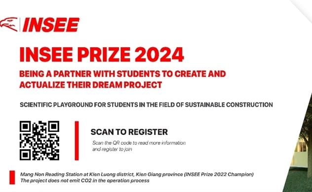 INSEE Prize officially kicks off on March 28th, 2024, a scientific playground for Architecture and Construction students nationwide, with a total prize up to VND300 million. The competition is an opportunity for contestants to develop sustainable ideas and the winning project will be actualized to create value for the community.