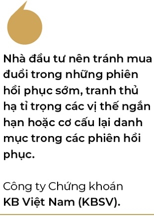 Ở bối cảnh hiện tại, Công ty Chứng khoán KB Việt Nam (KBSV) cho rằng nhà đầu tư nên tránh mua đuổi trong những phiên hồi phục sớm, tranh thủ hạ tỉ trọng các vị thế ngắn hạn hoặc cơ cấu lại danh mục trong các phiên hồi phục.