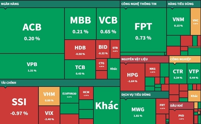 Sắc đỏ chiếm ưu thế ở sàn HOSE phiên 13/11. Ảnh: Fiintrade.