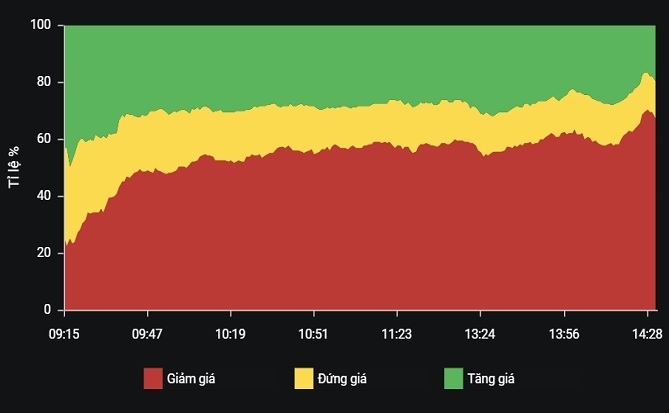 Sắc đỏ chiếm ưu thế trên sàn HOSE. Ảnh: VNDirect.
